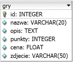 localhost, użytkownikrootbez hasła, baza danych o nazwiegry - Skrypt 1: